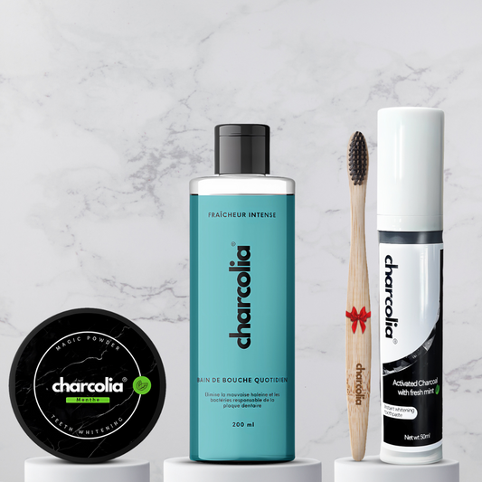 CHARCOLIA vous propose des formules innovantes à base de charbon actif, pour rendre vos dents plus blanches que jamais. Nous croyons en la puissance naturelle du charbon actif pour éliminer les taches et les impuretés, tout en respectant la santé de vos dents. Découvrez notre gamme de produits de blanchiment des dents, conçus pour vous offrir un sourire confiant et éclatant. Rejoignez-nous dans notre quête pour des dents plus saines et un sourire éblouissant.